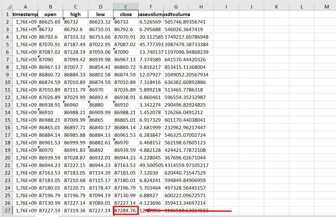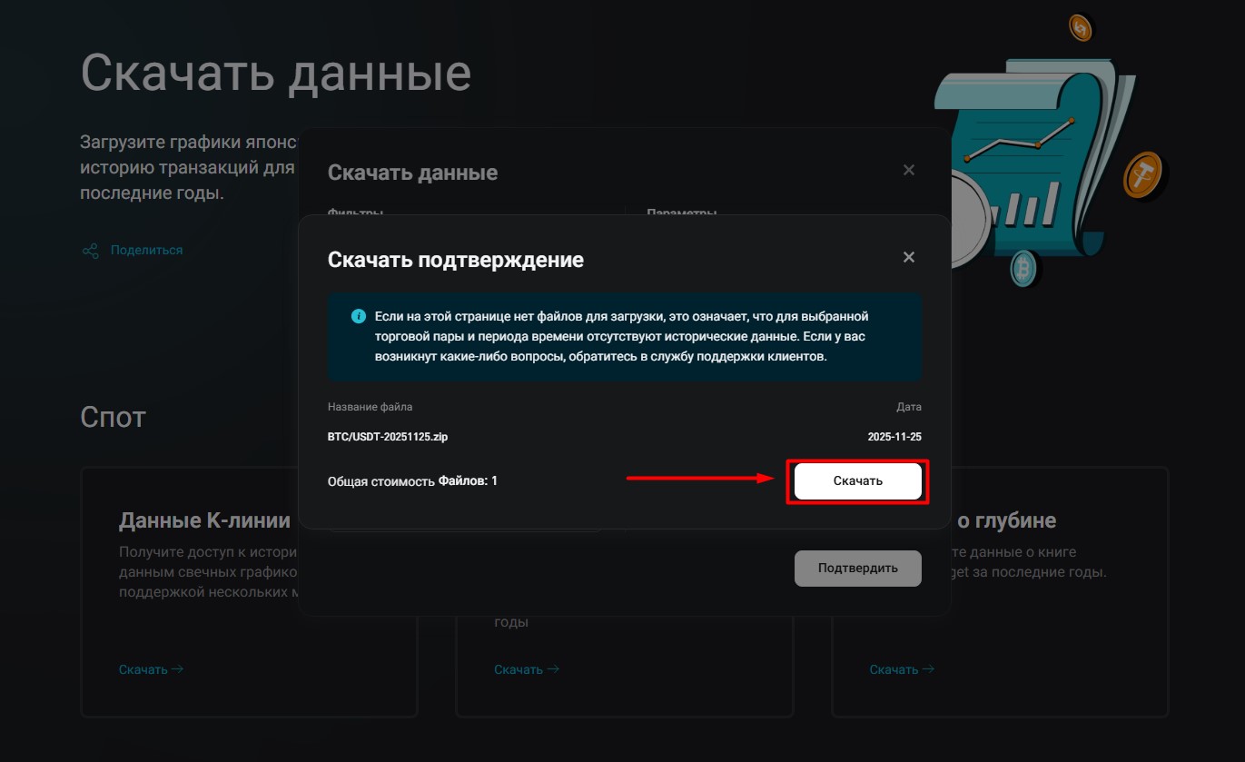 Выбрать СПОТ – Данные К-линии – Скачать