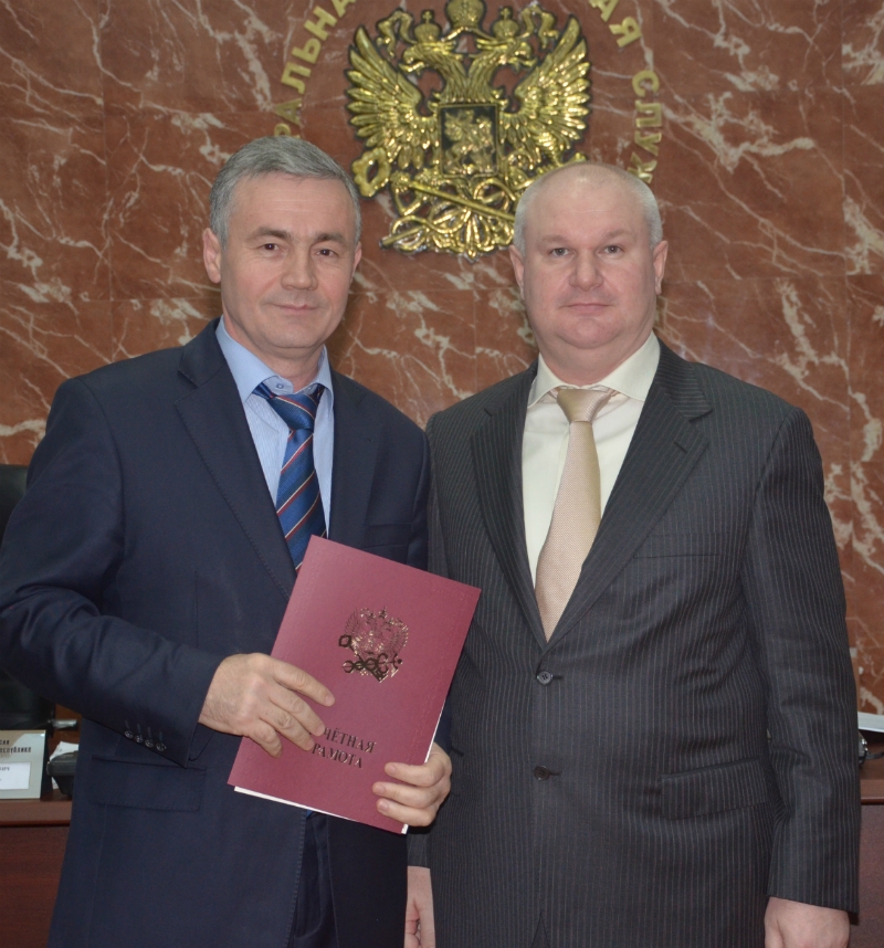 Так как на днях был День работников налоговых органов, по возвращении с расширенной коллегии ФНС России, руководитель Управления ФНС России по КБР Р. Ж. Бифов поздравил коллег, отметив их заслуги в обеспечении финансового благополучия региона, обеспечении поступлений в бюджет республики и вручил ведомственные награды Минфина России, ФНС России, Правительства КБР и УФНС России по КБР.