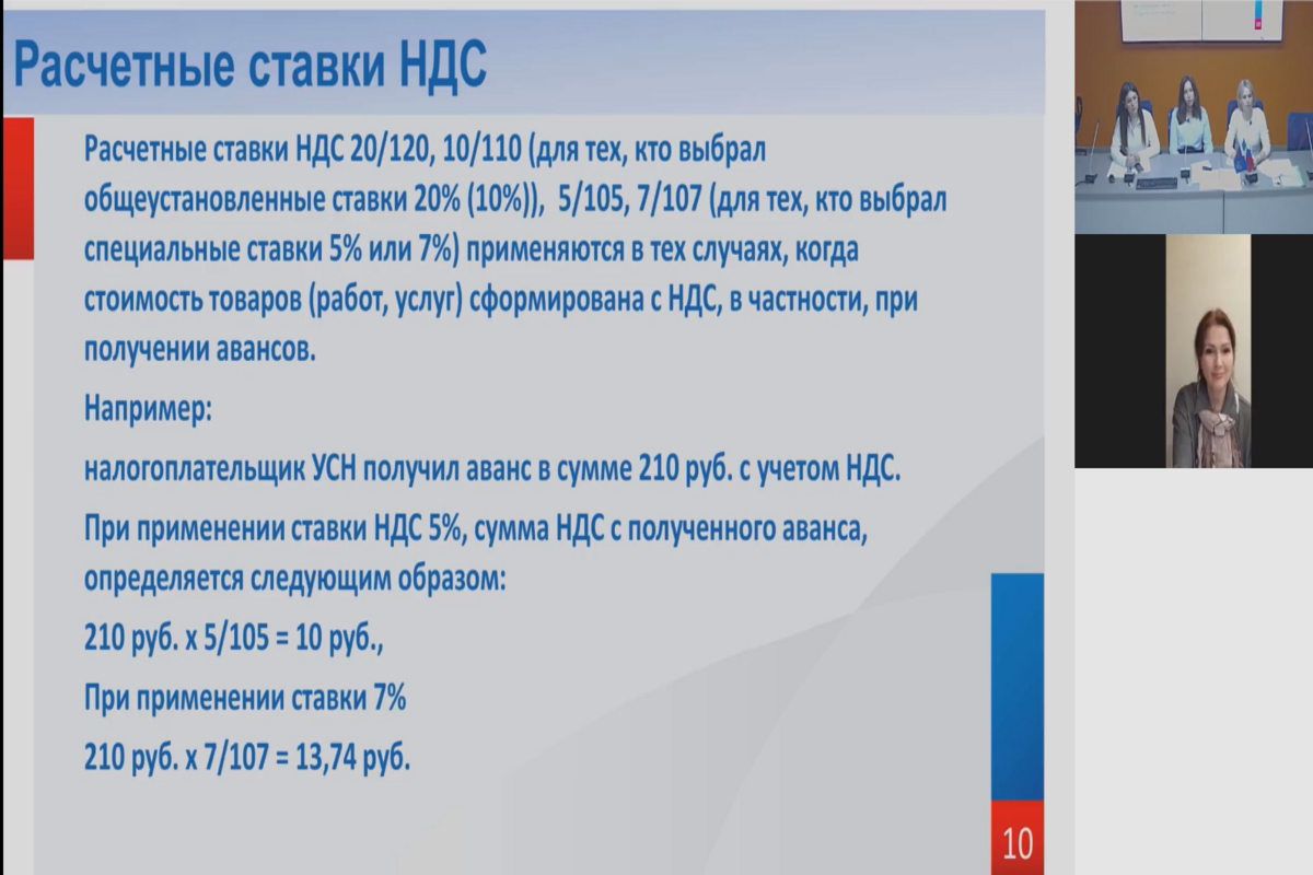В завершении вебинара главный государственный налоговый инспектор отдела камерального контроля НДС№2 Наталья Маслова разъяснила, как не допускать ошибки, и что необходимо учитывать бизнесу, который впервые столкнулся с обязанностью исчисления и уплаты НДС при применении УСН.