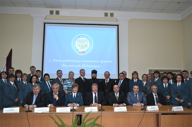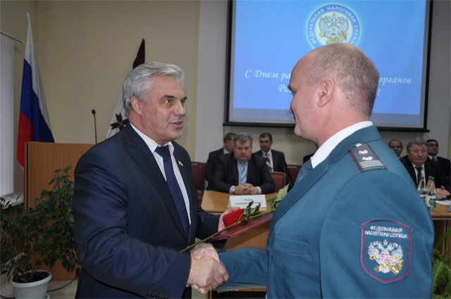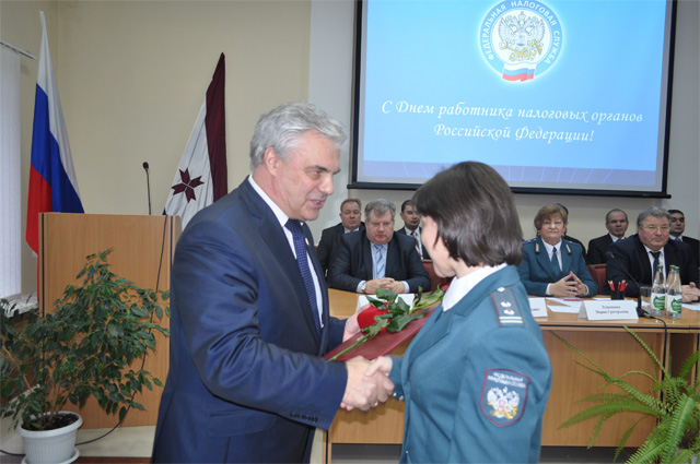 Поздравить налоговиков с профессиональным праздником пришли Глава Республики Мордовия В.Д.Волков, Главный Федеральный инспектор по Республике Мордовия А.М.Пыков, Председатель государственного собрания РМ В.В.Чибиркин, а также представители министерств и ведомств республики.