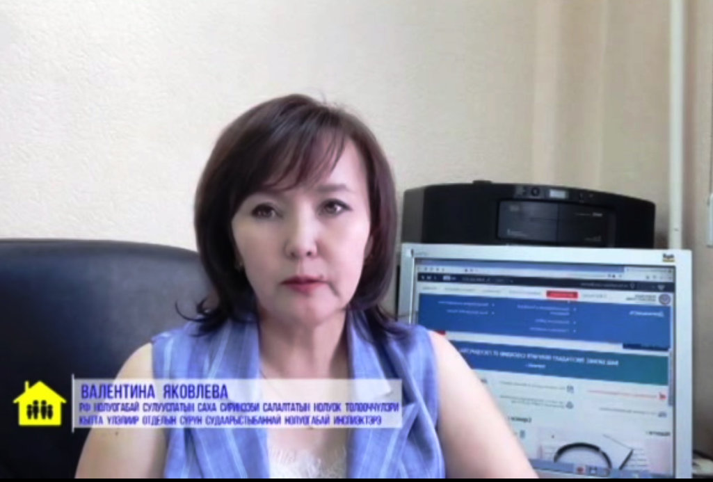"Декларационной кампании-2020" рассказала в передаче "Дьиэбитигэр олоруо5ун" (Сидим дома) по НВК Саха главный государственный инспектор отдела работы с налогоплательщиками Управления ФНС России по Республике Саха (Якутия)