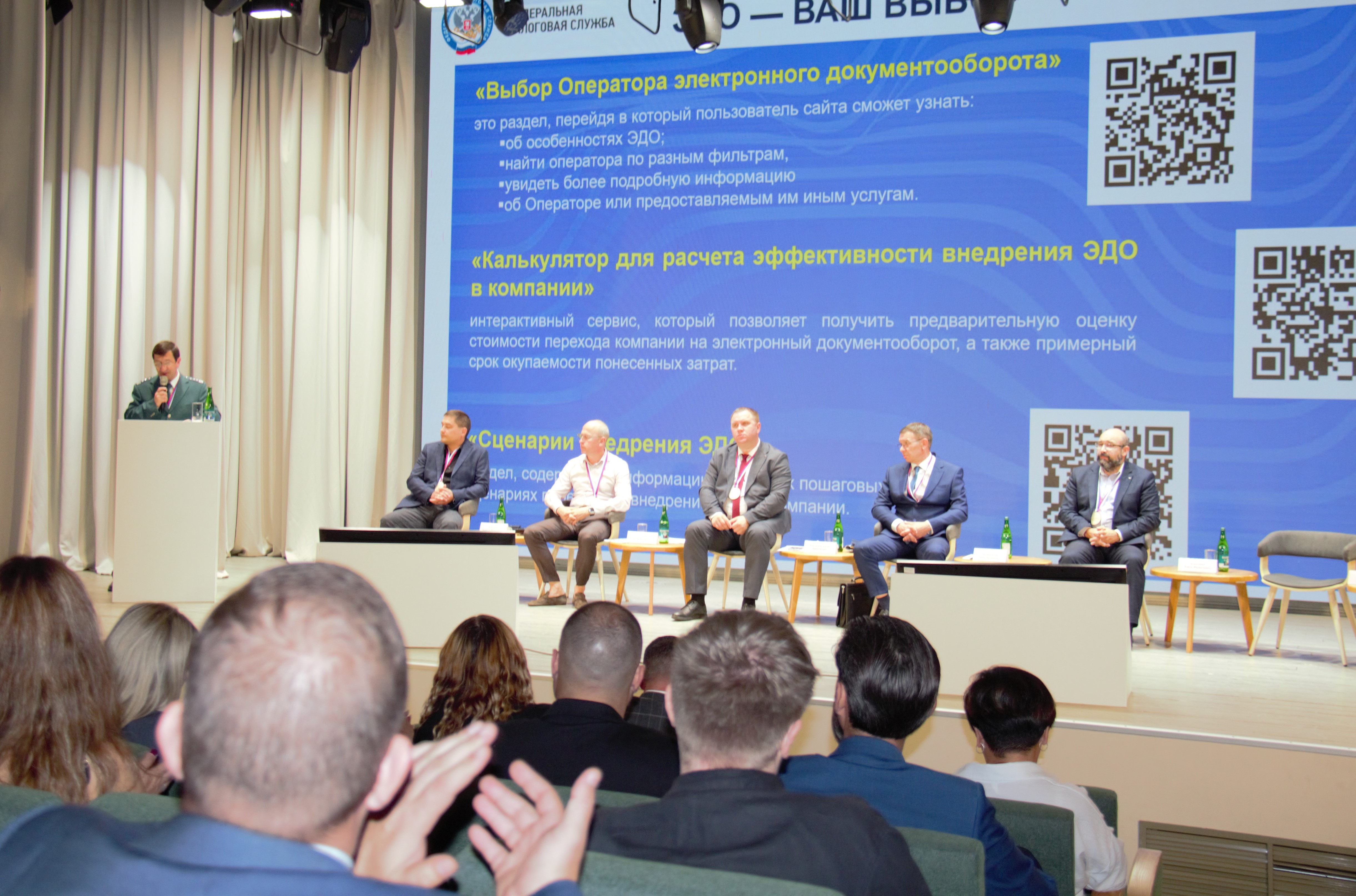 Завершая свое выступление, Андрей Никиташин пригласил предпринимателей на практическую конференцию "Внедряем ЭДО. Казань", которая состоится в Казани 7 и 8 октября 2024 с участием представителей ФНС России.