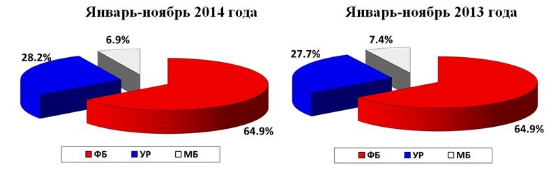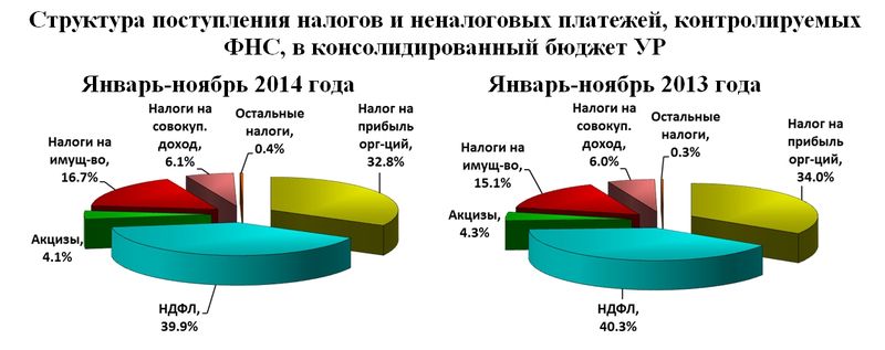 За январь-ноябрь 2014 года в Удмуртской Республике налоговыми органами мобилизовано в консолидированный бюджет Российской Федерации налоговых и неналоговых платежей, контролируемых