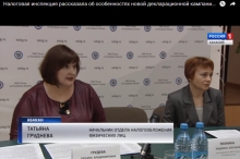 Более подробно о прошедшем мероприятии можно ознакомится посмотрев видеоролик с участием заместителя руководителя УФНС России по Республике Хакасия Мехниной Людмилы и начальника отдела налогообложения имущества и доходов физических лиц Грудевой Татьяны новостной программы какала ВГТРК.