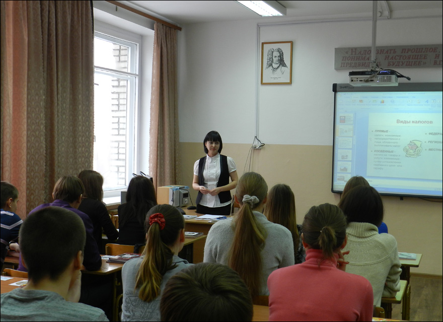 Один из таких уроков прошел в Гимназии №27 г. Барнаула. На нем присутствовали ребята специализированного социально-экономического класса. Большинству из них придется в дальнейшем плотнее изучать налоговые дисциплины и, конечно, вопросы будут присутствовать в ЕГЭ. Поэтому, по мнению учителя истории и обществознания Н.В. Дудко, такие уроки очень полезны и своевременны: «Мы не на все интересующие вопросы можем ответить, только в рамках программы, а здесь школьники могут задать любой вопрос и получить квалифицированный ответ».