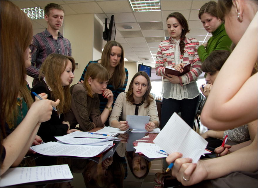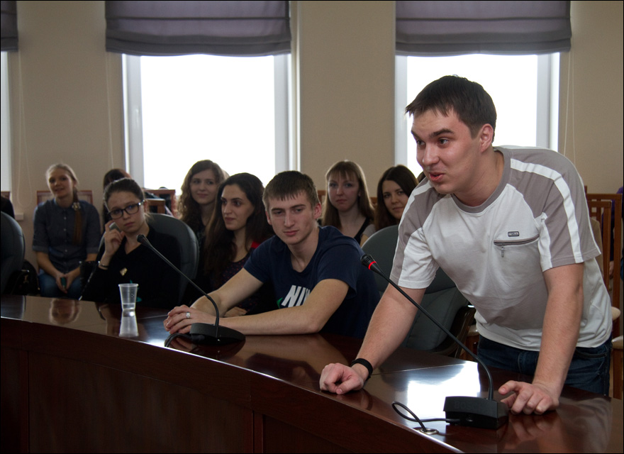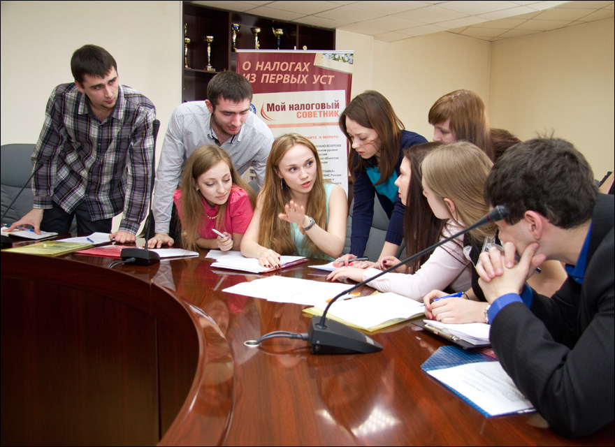 Правила дискуссии были оговорены заранее: ребята были разделены на две команды, первая готовила аргументы за интерактивность услуг налоговой службы, вторая - против. В самой игре участие приняло 22 человека, остальные составили группу поддержки.