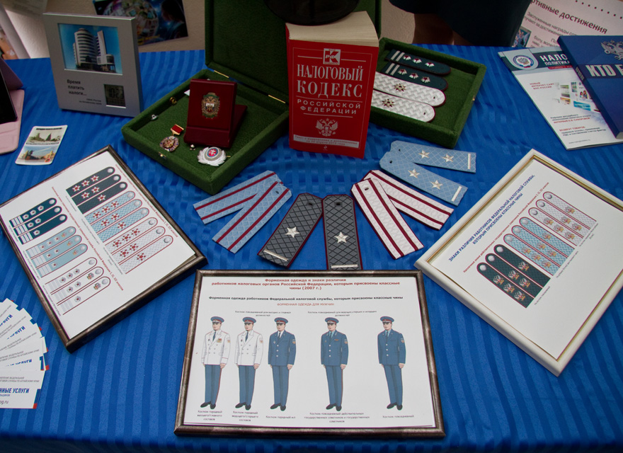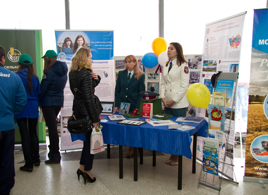 Презентационный сектор ярмарки отличался от основного более полной информацией, которую организации представляли наглядно. Налоговая служба подготовила небольшую фотовыставку, объемно иллюстрирующую работу инспекторов. Кроме того, были продемонстрированы некоторые экспонаты музея УФНС России по Алтайскому краю, среди которых парадная форма Министерства по налогам и сборам, повседневная форма Федеральной налоговой службы, а также погоны, знаки различия и награды государственных гражданских служащих. Экспозицию дополнял стеллаж с изданиями ФНС и краевого управления: учебник для старшеклассников «О налогах легко», книжка-раскраска для самых маленьких, а также монография руководителя управления