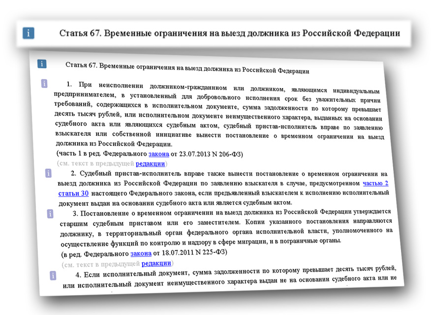МИФНС России №15 по Алтайскому краю обращает внимание индивидуальных предпринимателей, имеющих непогашенный долг перед бюджетом, что в соответствии с нормами статьи 67 Федерального закона от 02.10.2007 № 229- ФЗ «Об исполнительном производстве» при неисполнении должником в установленный срок без уважительных причин требований, содержащихся в исполнительном документе, выданном на основании судебного акта или являющимся судебным актом, судебный пристав-исполнитель вправе по заявлению взыскателя или собственной инициативе вынести постановление о временном ограничении на выезд должника из Российской Федерации. Если исполнительный документ не является судебным актом и выдан не на основании судебного акта, то взыскатель или судебный пристав-исполнитель вправе обратиться в суд с заявлением об установлении для должника временного ограничения на выезд из РФ.