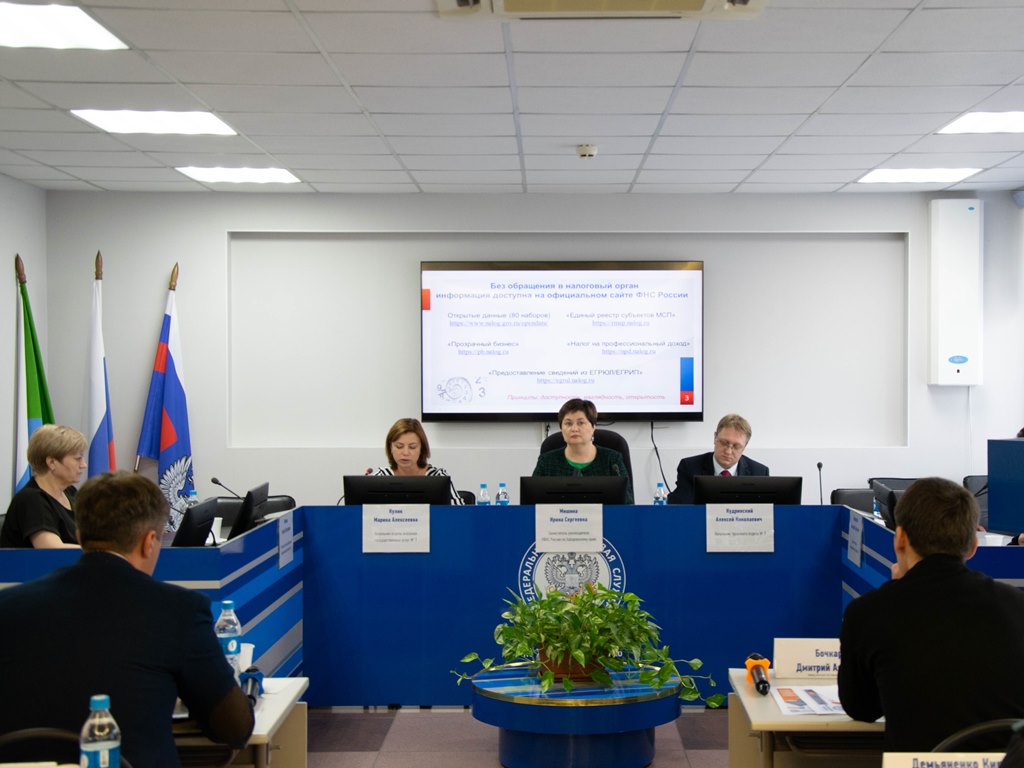 Начальник отдела оказания государственных услуг Управления Марина Кулик рассказала участникам совещания, что большинство сведений, которыми обладает налоговая служба, размещены в форме открытых данных на сайте ФНС России. «В настоящее время статистическая информация представлена по 80 наборам открытых данных, где представлены сведения об учредителях (руководителях) юридических лиц, реестр дисквалифицированных лиц, налоговая отчетность, единый реестр субъектов малого и среднего предпринимательства, информация о задолженности и многое другое», - сообщила она.