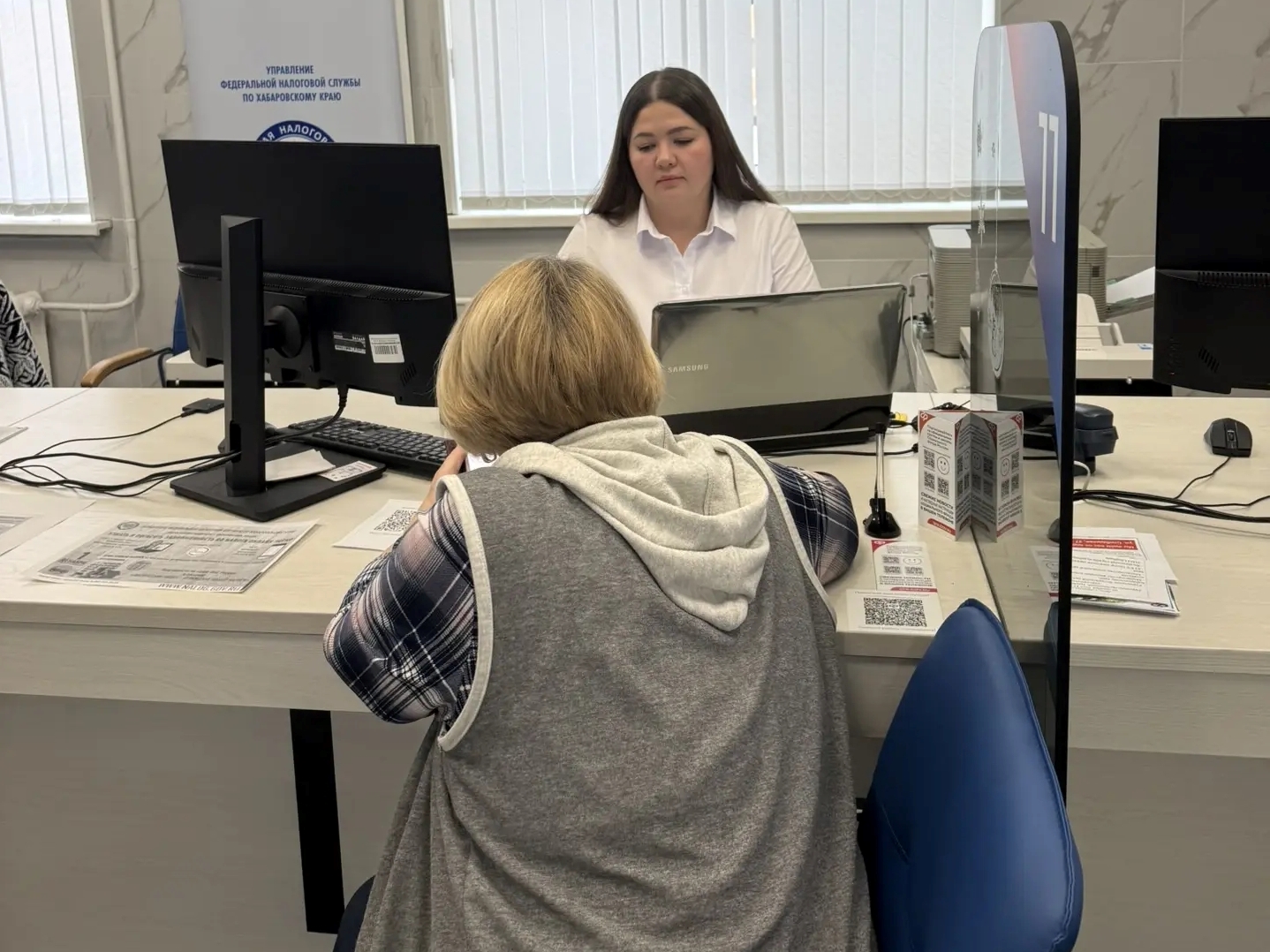 В здании отделения Социального фонда России по Хабаровскому краю и ЕАО сотрудники краевого налогового управления консультировали хабаровчан.