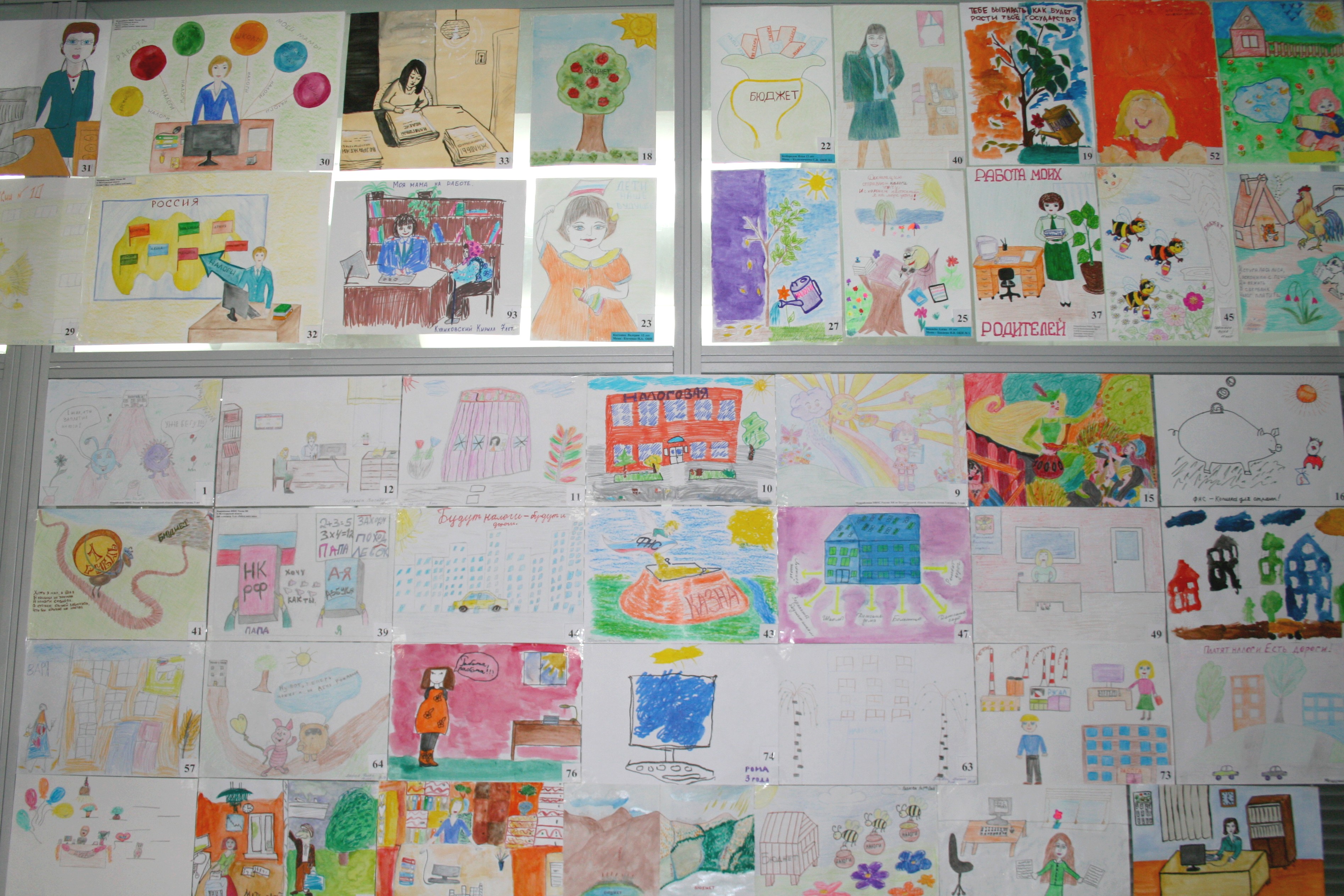 В просторном холле здания УФНС России по Волгоградской области организована выставка рисунков детей сотрудников налоговых органов области, а также поделок детского творчества воспитанников подшефного Новоаннинского детского дома. В тематическом конкурсе детских рисунков, который был назван «Работа моих родителей», приняло участие 95 работ.