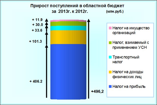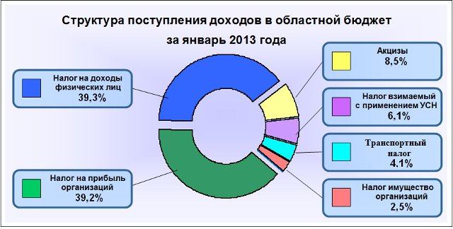 За январь 2013 года в областной бюджет поступило администрируемых доходов 1970,1 млн. рублей, что на 496,2 млн. рублей, или на 33,7% превышает уровень аналогичного периода прошлого года.