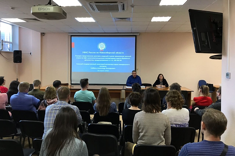 Специалисты отдела камерального контроля Управления Федеральной налоговой службы по Новосибирской области 19 апреля 2018 года выступили на семинаре, организованном Новосибирским областным отделением Общероссийской общественной организации малого и среднего предпринимательства «ОПОРА РОССИИ» в рамках образовательного проекта «Школа ВЭД».