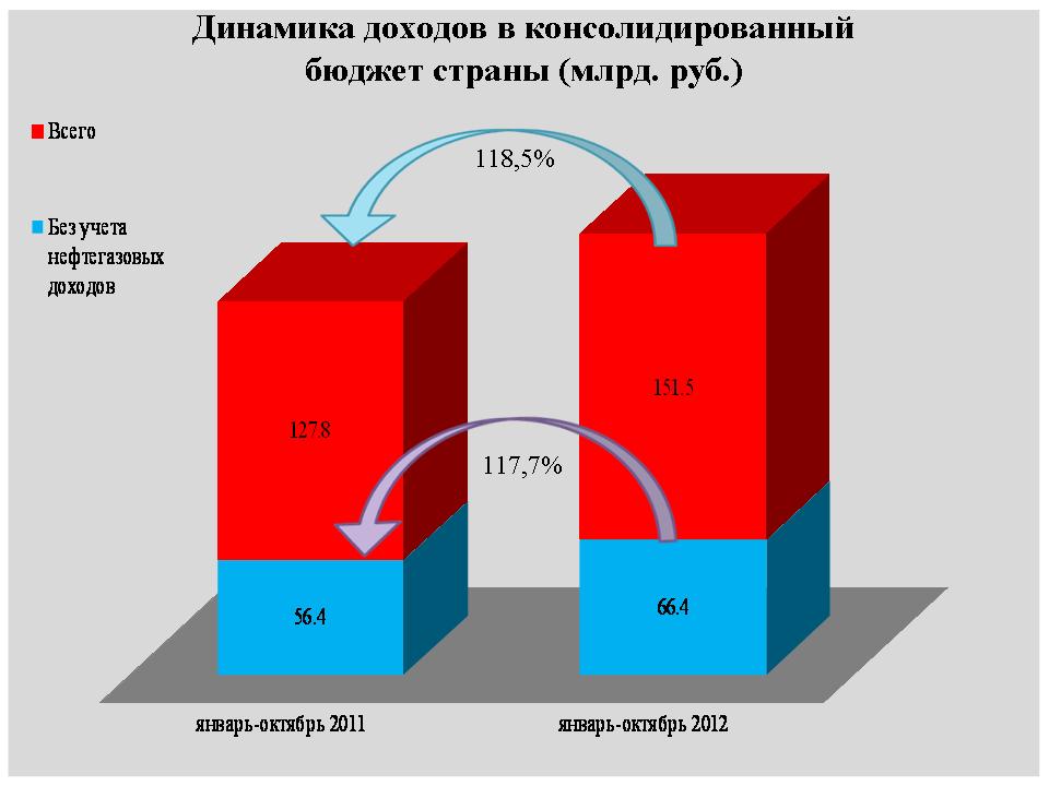 За январь-октябрь 2012 года в бюджеты всех уровней поступило 151,5 млрд. рублей налоговых доходов, что на 18,5% больше уровня января-октября 2011 года.