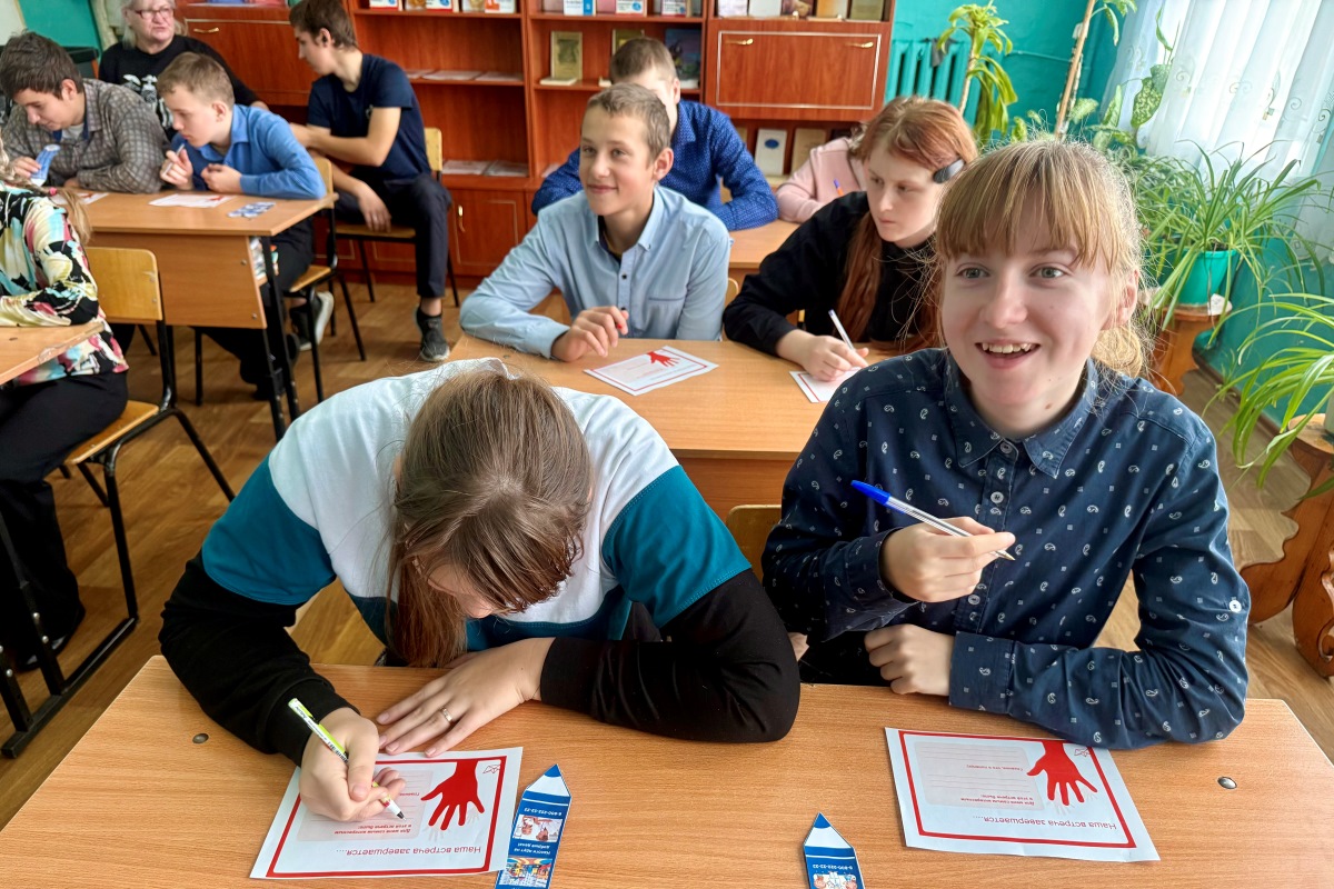 В завершении встречи ученики получили сладкие подарки и поделились впечатлениями, написав о самых запоминающихся моментах урока на бумажных ладошках.