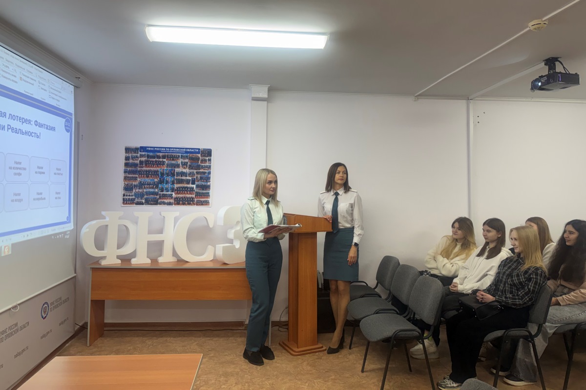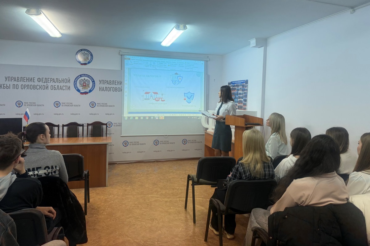 На текущей неделе сотрудники ОП №4 УФНС России по Орловской области провели урок налоговой грамотности для студентов Ливенского филиала федерального государственного бюджетного образовательного учреждения высшего образования "Орловский государственный университет имени И.С. Тургенева».