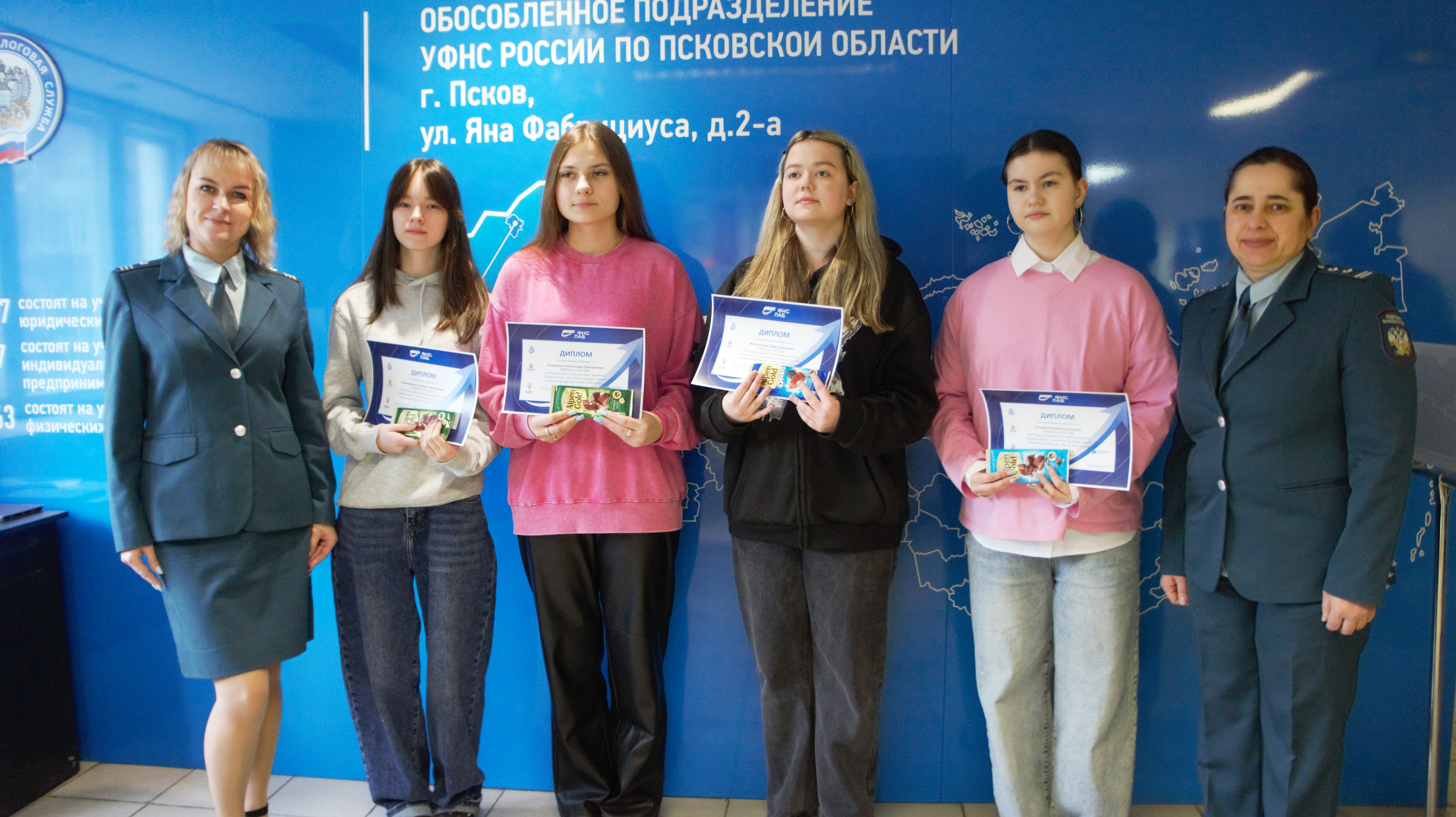 Награждение победителей регионального этапа IV Всероссийского Налогового диктанта «Наши налоги – достойное будущее детей» прошло в УФНС России по Псковской области.