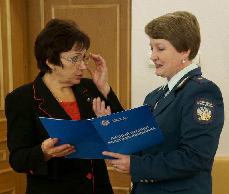 Елена Васильевна познакомилась с работой инспекции, а также зарегистрировалась в «Личном кабинете налогоплательщика для физических лиц». Руководитель УФНС России по Псковской области Е.Н.Жгут лично вручила Е.В.Бибиковой регистрационную карту для входа в «Личный кабинет», содержащую логин и пароль.