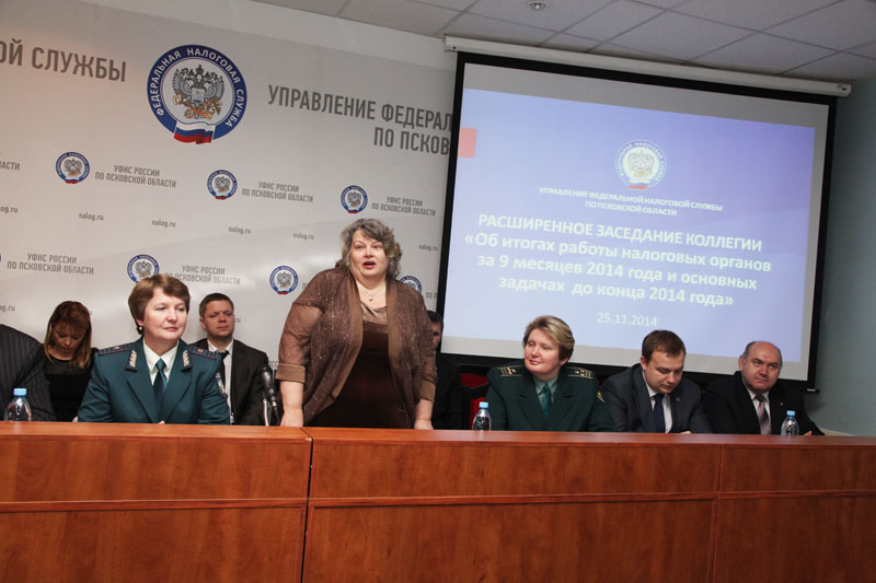 25 ноября 2014 года в Управлении Федеральной налоговой службы по Псковской области состоялось расширенное заседание коллегии УФНС России по Псковской области «Об итогах работы налоговых органов Псковской области за 9 месяцев 2014 года и основных задачах до конца года».