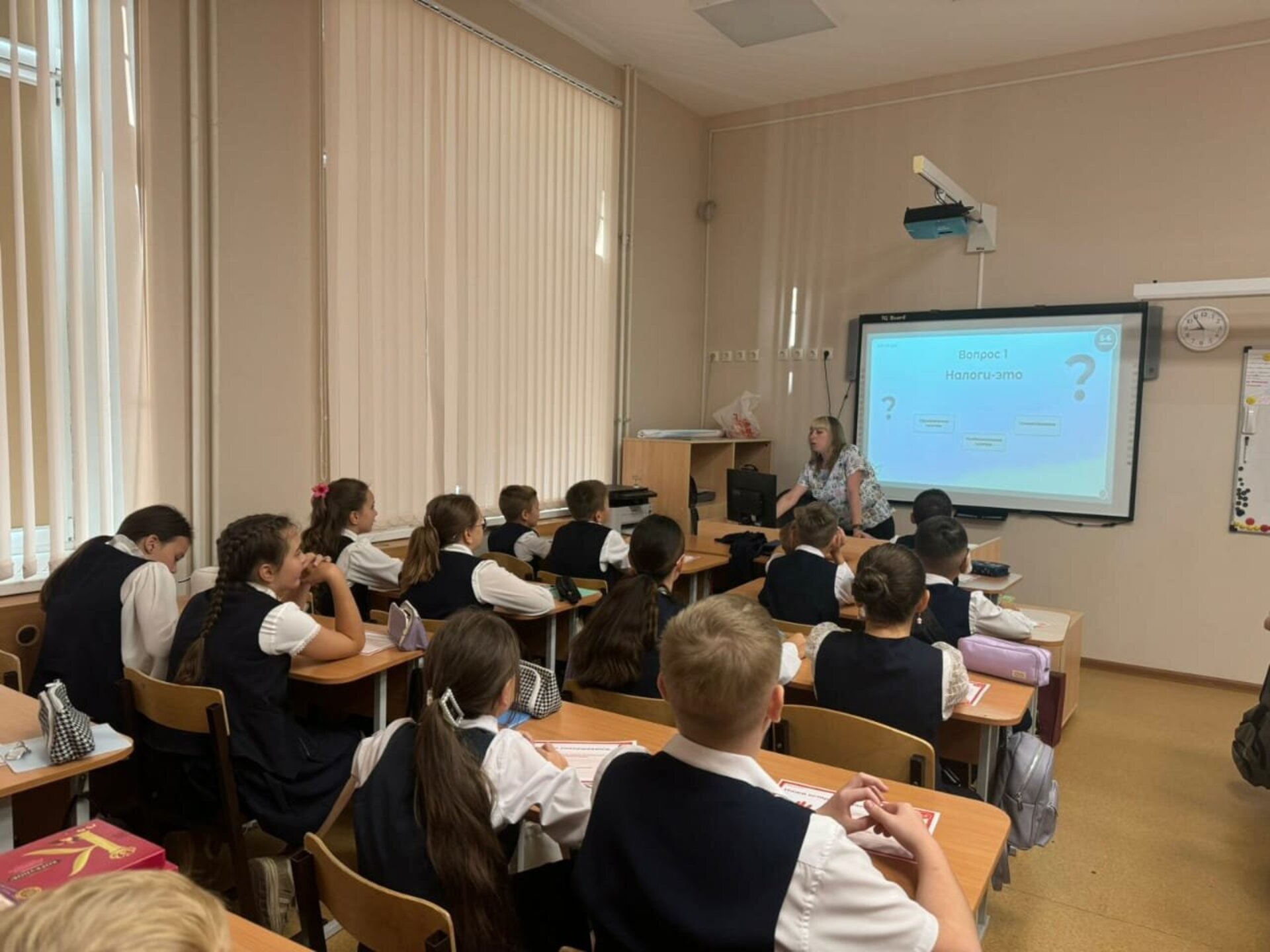 На уроке ребята активно участвовали в диалоге, разгадывали ребусы, проявляя находчивость и неподдельный интерес к теме налогообложения. Для закрепления полученных знаний школьникам предложили ответить на вопросы викторины по налоговой тематике.