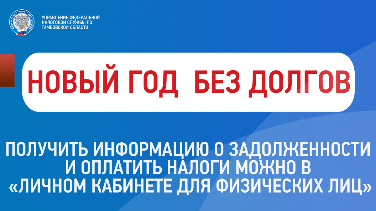 В целях информирования широких слоев населения о необходимости уплаты задолженности по имущественным налогам физических лиц за 2018 год на территории Тамбовской области проходит акция «Новый год без долгов».