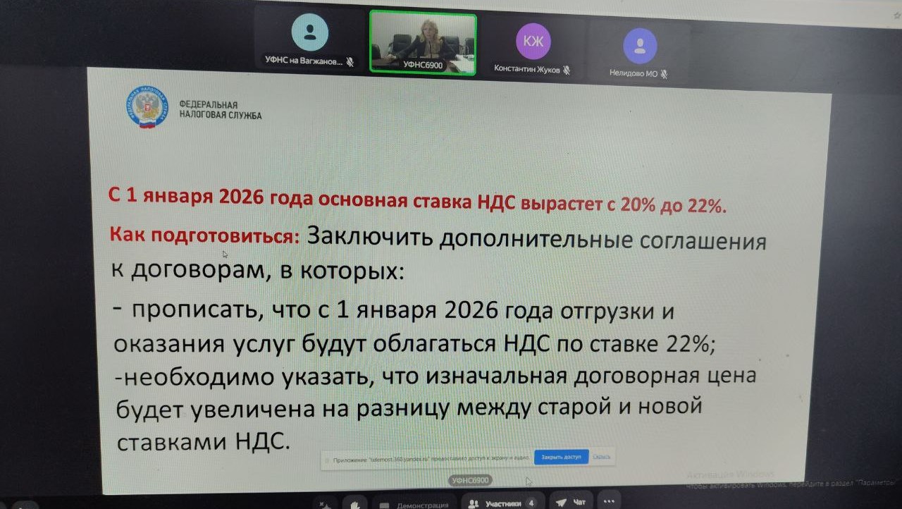Участников семинаров проинформировали, что со следующего года увеличена основная ставка по НДС с 20% до 22%. При этом сохраняется льготная ставка 10 % для социально значимых товаров: продуктов питания, лекарственных средств и медицинской продукции, товаров для детей и др.