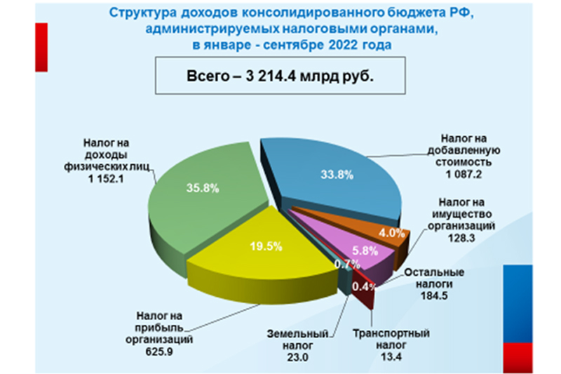 Удельный вес налога на прибыль организаций в консолидированном бюджете РФ составляет 19,5%, или 625,9 млрд рублей, что на 18,4% больше, чем в аналогичном периоде 2021 года, в том числе в федеральный бюджет поступило 129,5 млрд руб., в городской – 496,4 млрд рублей.
