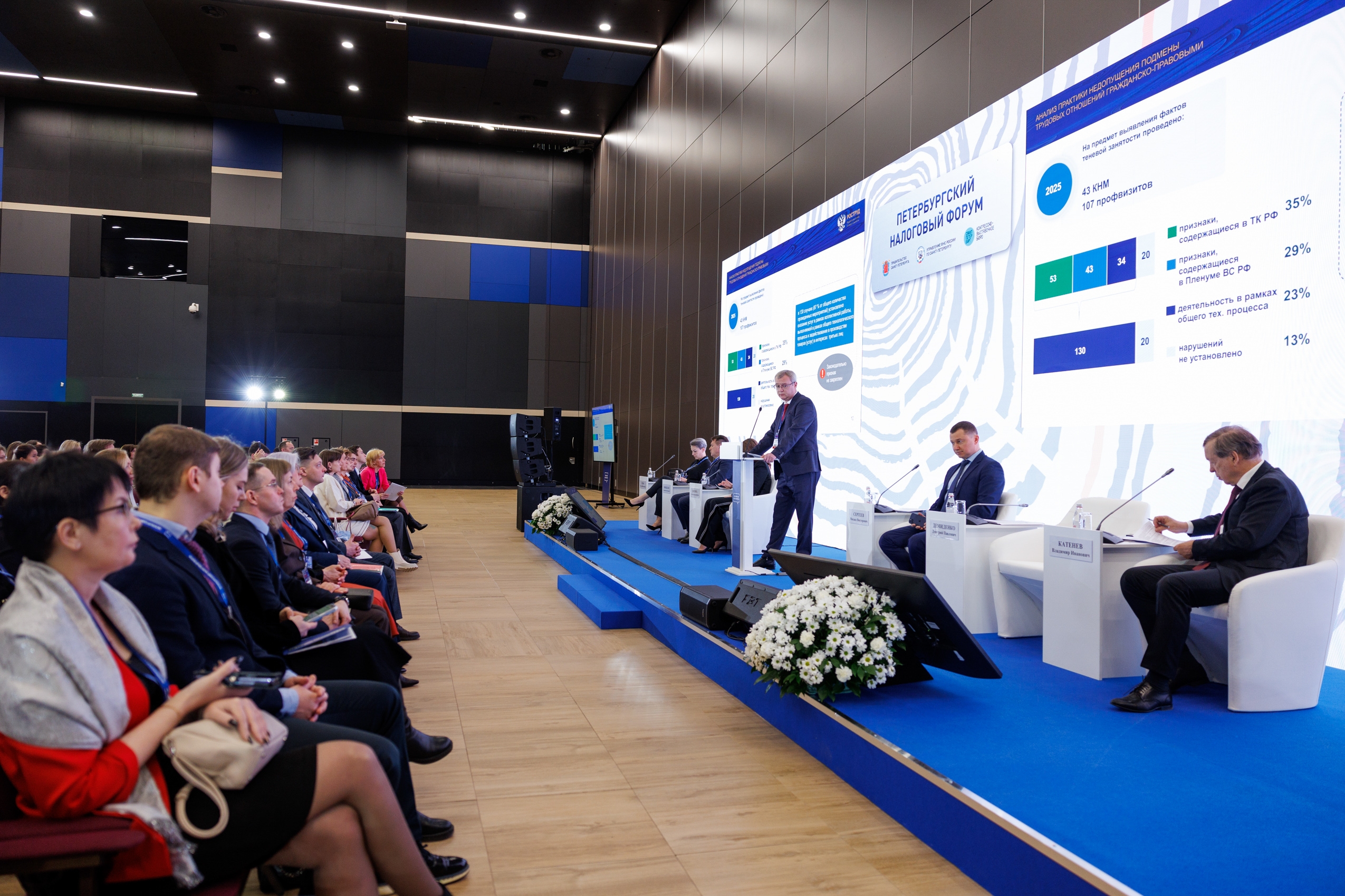 Модератором одной из ключевых сессий «Детенизация рынка труда. Влияние на доходы бюджета субъектов» выступил Президент Санкт-Петербургской торгово-промышленной палаты, председатель Общественного совета при Управлении ФНС России по Санкт-Петербургу Владимир Катенев.
