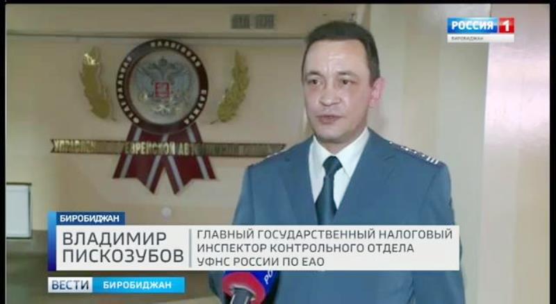 В эфире регионального телеканала «Россия–1» 19.01.2017 в рамках передачи «Интервью» состоялось выступление главного государственного налогового инспектора контрольного отдела УФНС России по Еврейской автономной области В.В. Пискозубова. Интервью было посвящено переходу на новый порядок применения контрольно-кассовой техники (ККТ).