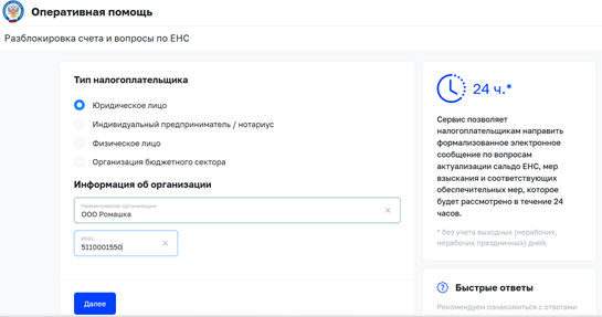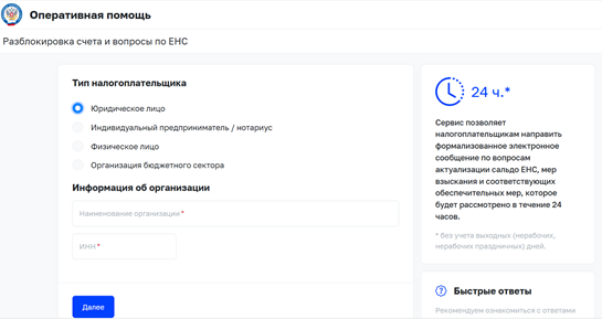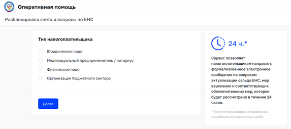 По вопросам снятия блокировки счета в сервис «Оперативная помощь: разблокировка счета и вопросы по ЕНС» могут обратиться следующие категории налогоплательщиков: