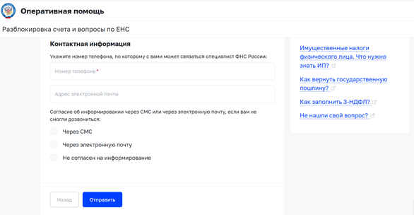 Указать контактную информацию, по которой с вами может связаться специалист ФНС России