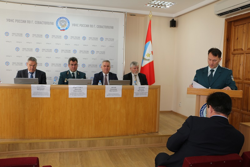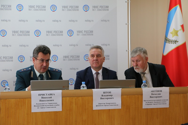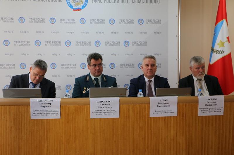 В заседании приняли участие Главный федеральный инспектор по городу Севастополю Аппарата полномочного представителя Президента РФ в ЮФО А.П. Антонцев, депутат Законодательного собрания города Севастополя, председатель постоянной комиссии по бюджету В.В. Аксёнов, директор Департамента финансов города Севастополя В.В. Штоп, председатель Общественного Совета при УФНС России по г. Севастополю О.С. Гасанов.